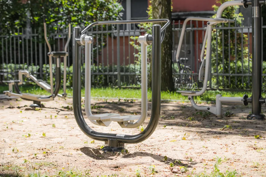 Put both feet on the platforms and grab the handles with your hands. Push your legs simultaneously and alternately forward and backward. Keep the upper body still, while ‘walking’ with your legs.