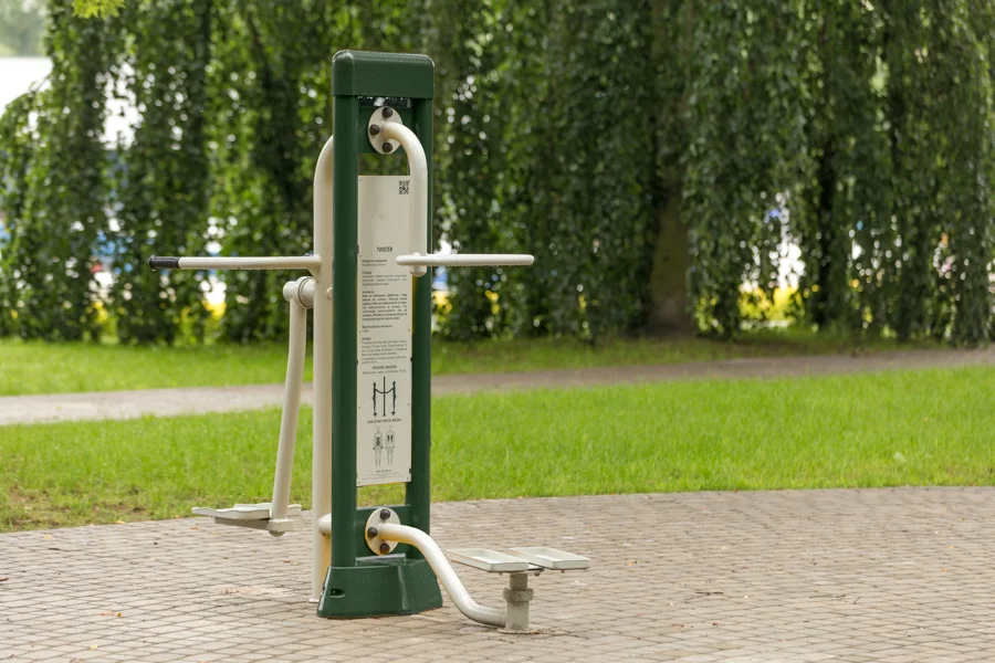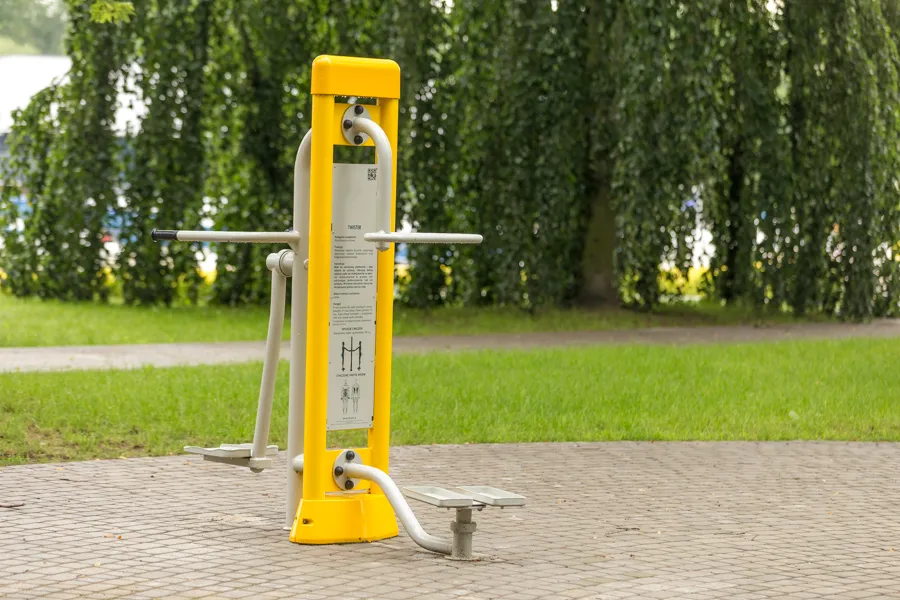 Grab the handles and stand on the rotating platform. Twist your hips to the left and right. Repeat the steps several times. Try to keep your upper body still during the exercise.