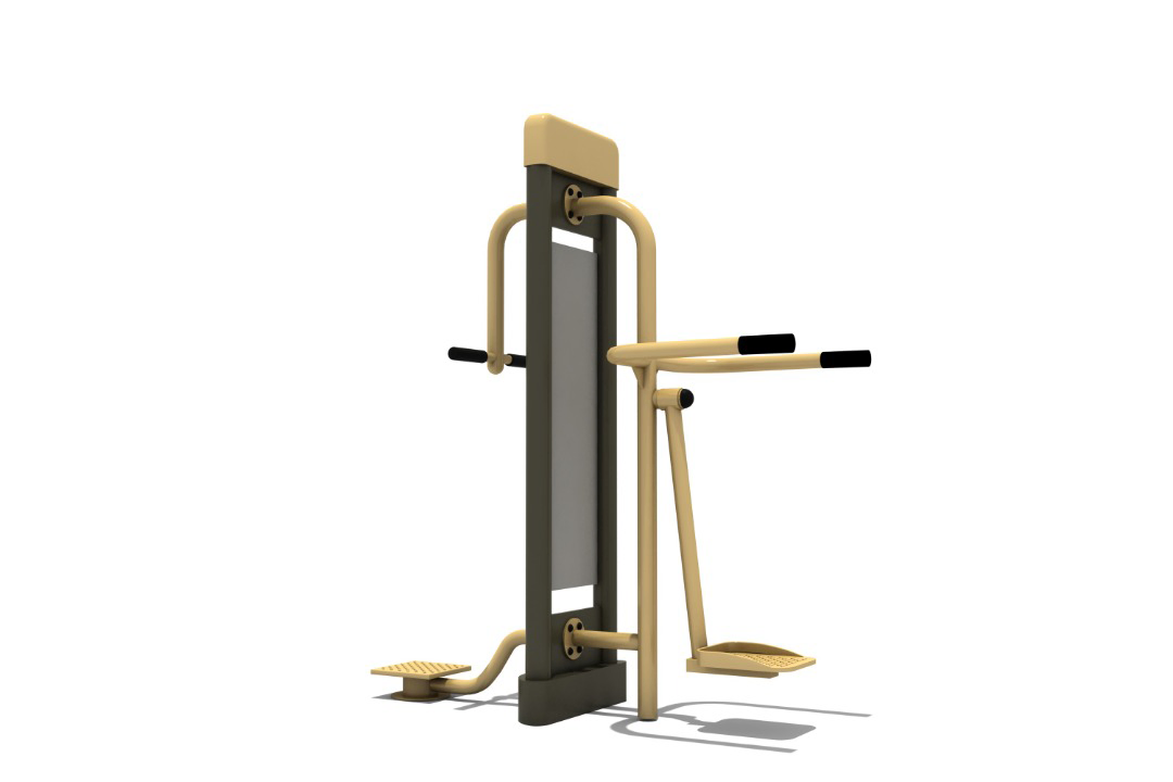 Grab the handles with both hands and stand on the platform. With your legs slightly bent, tilt the pelvis to the right and left. Keep your upper body still.